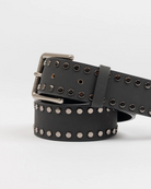 Suede-look Belt With Antique Silver Metal Buckle And Studs. Nubuck Suede 100% Polyurethane
