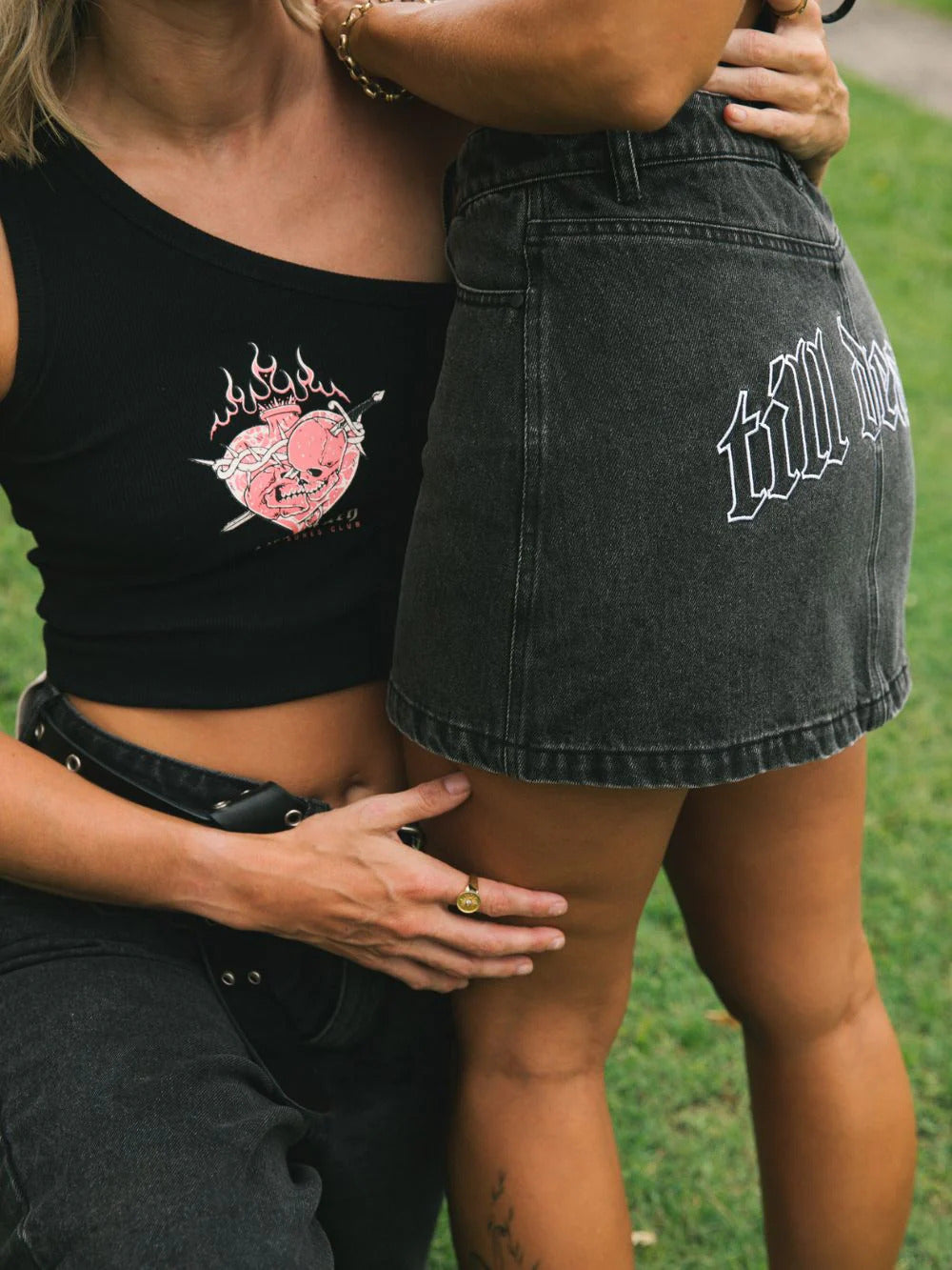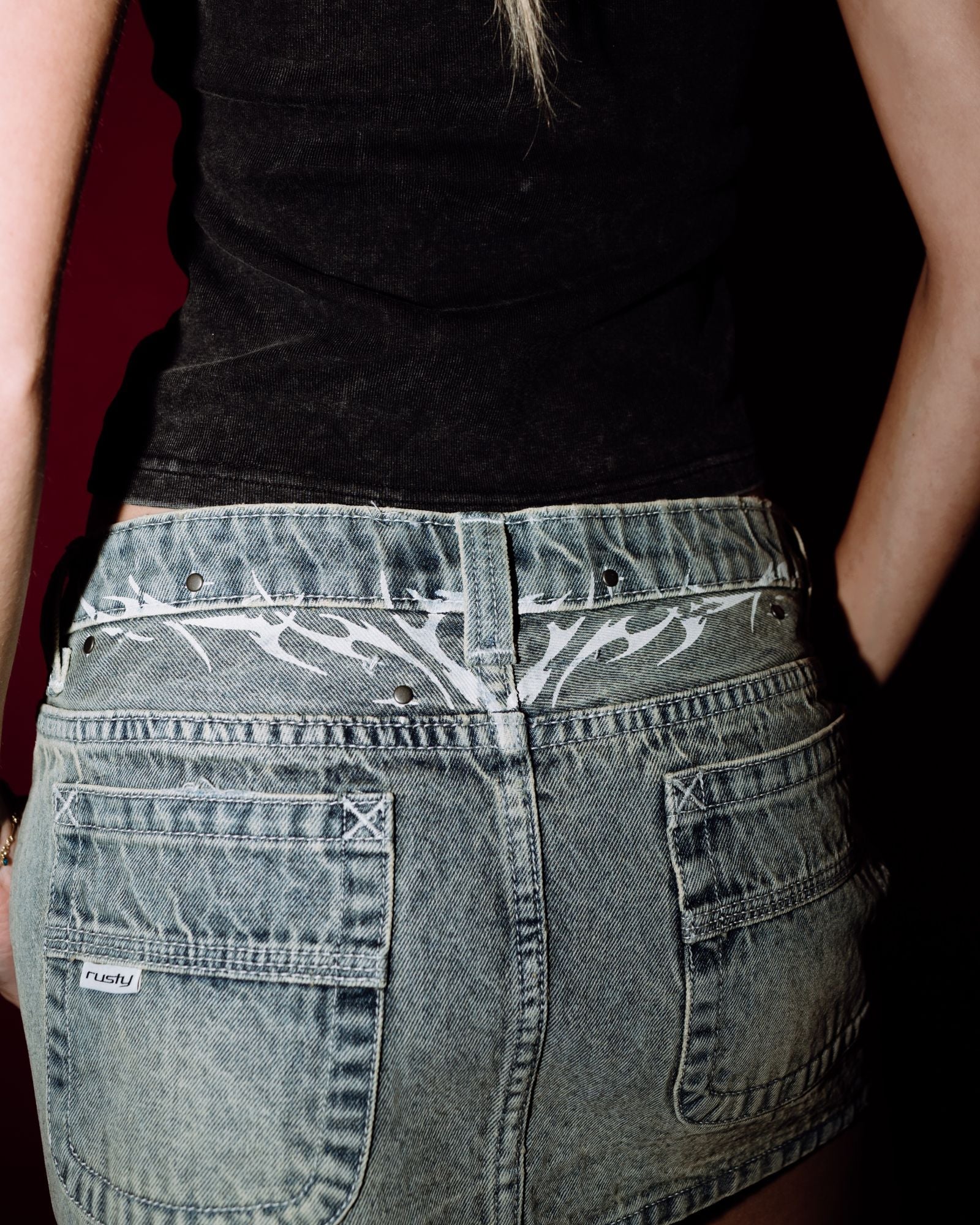 BLASTED EYE LET LOOSE DENIM MICRO SKIRT