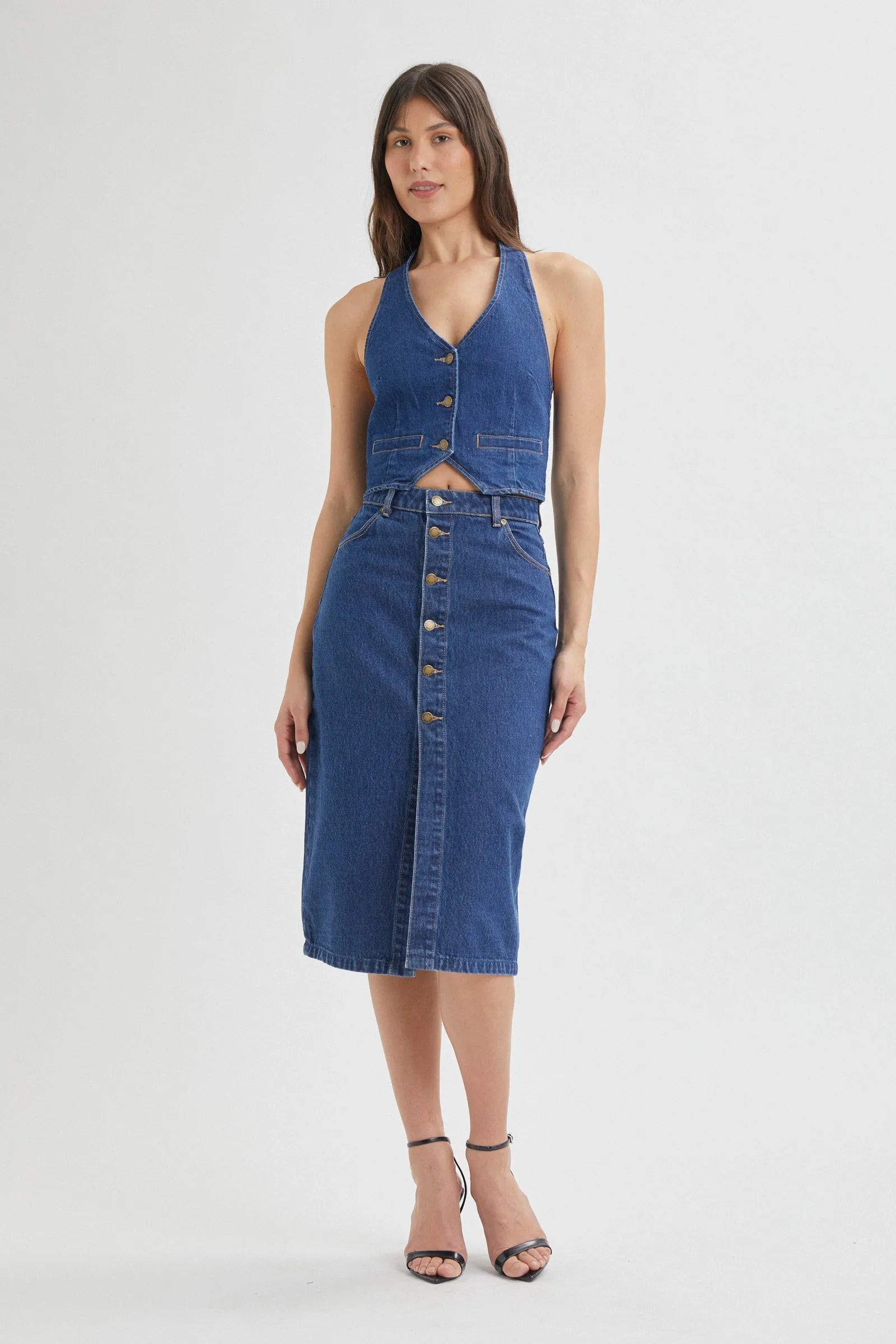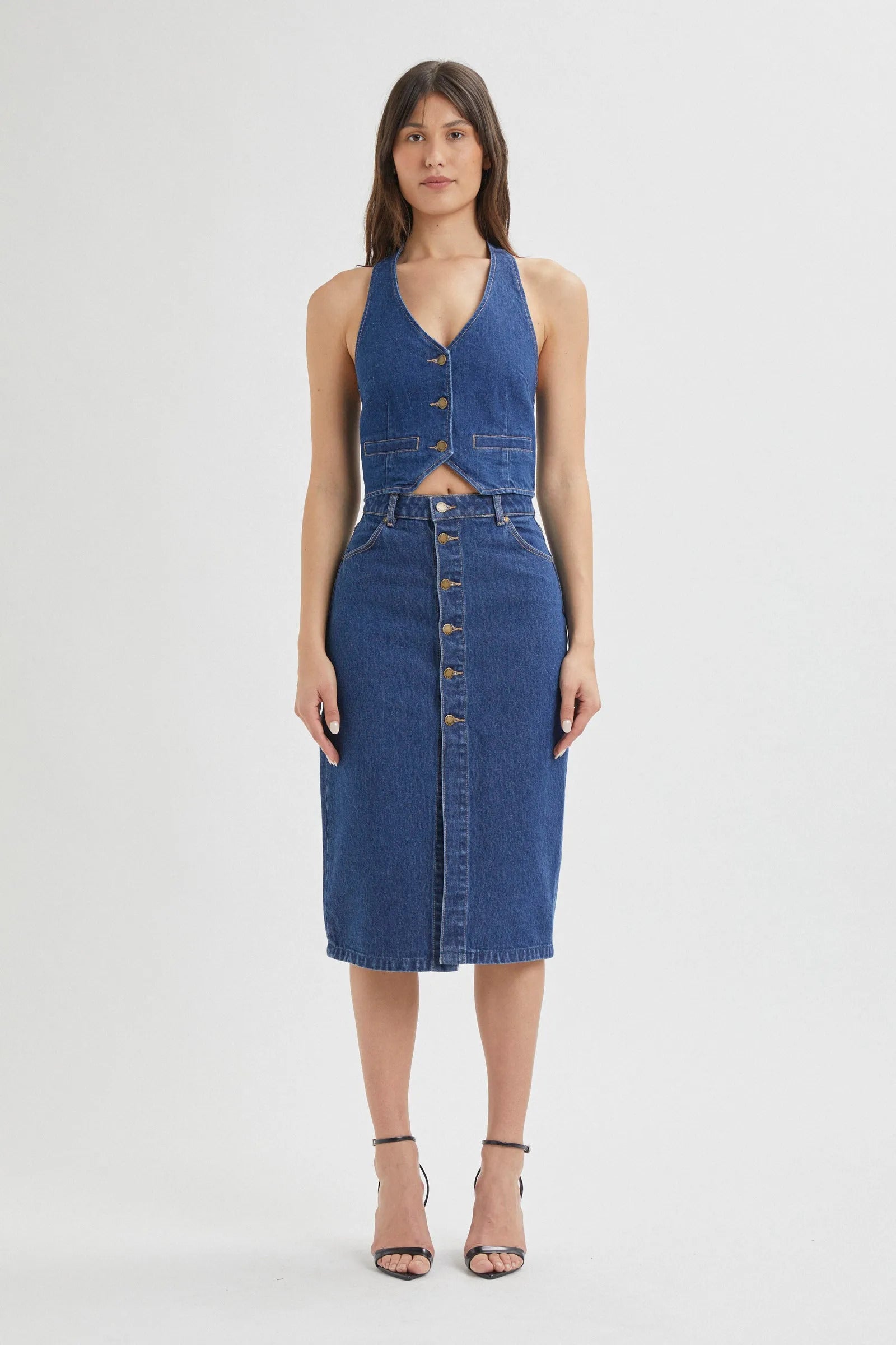 BRIXTON LOW RISE DENIM MINI SKIRT