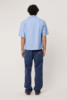 - Features a one-piece collar that can be worn open and spread or closed at the neck