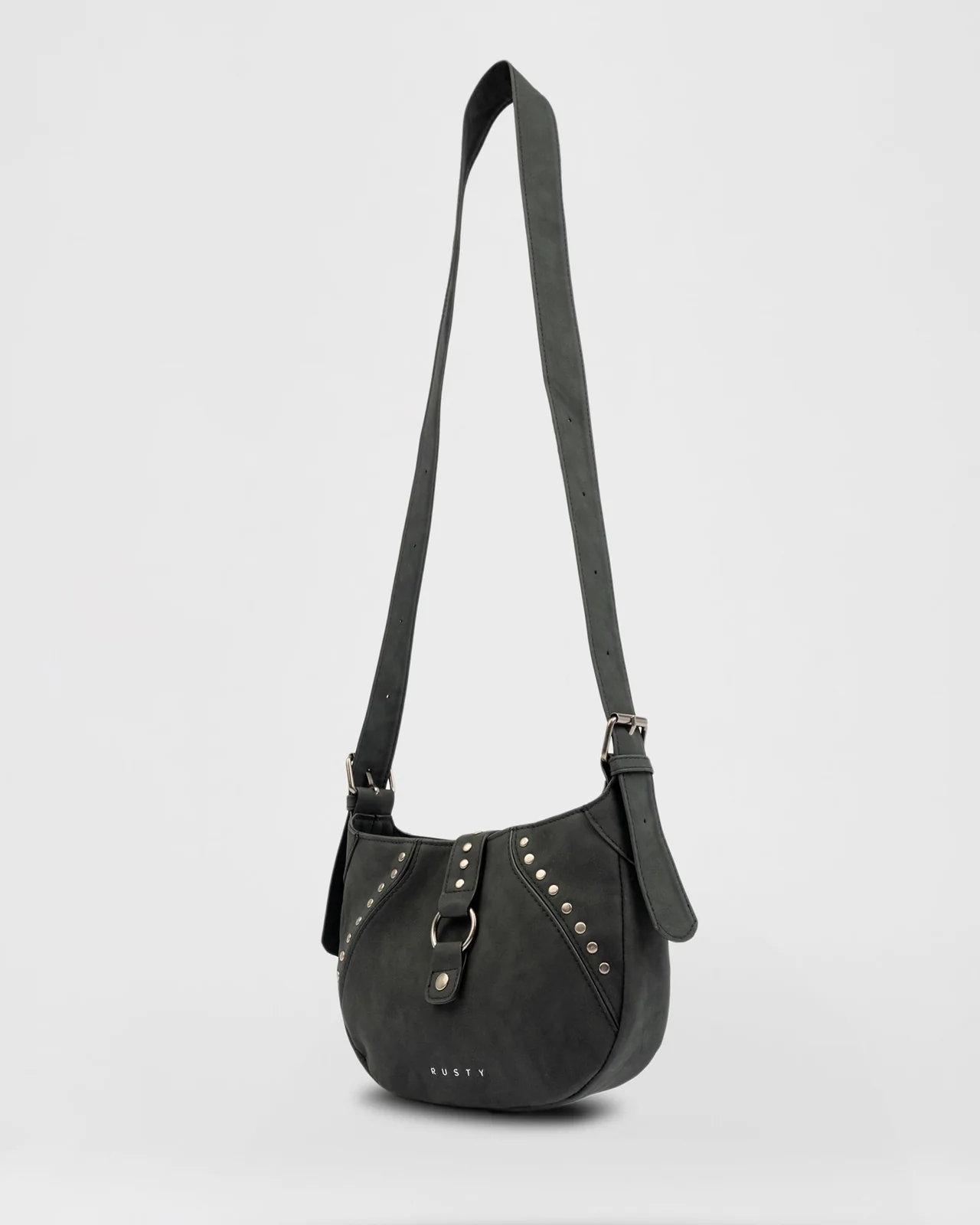 W21cm - H15cm Shoulder Bag With Buckle And Metal Stud Detail And Adjustable Shoulder Strap. Nubuck Suede 100% Polyurethane