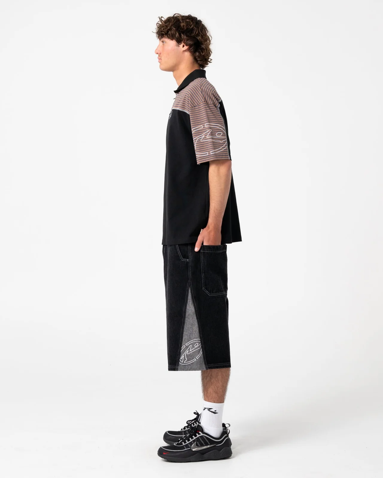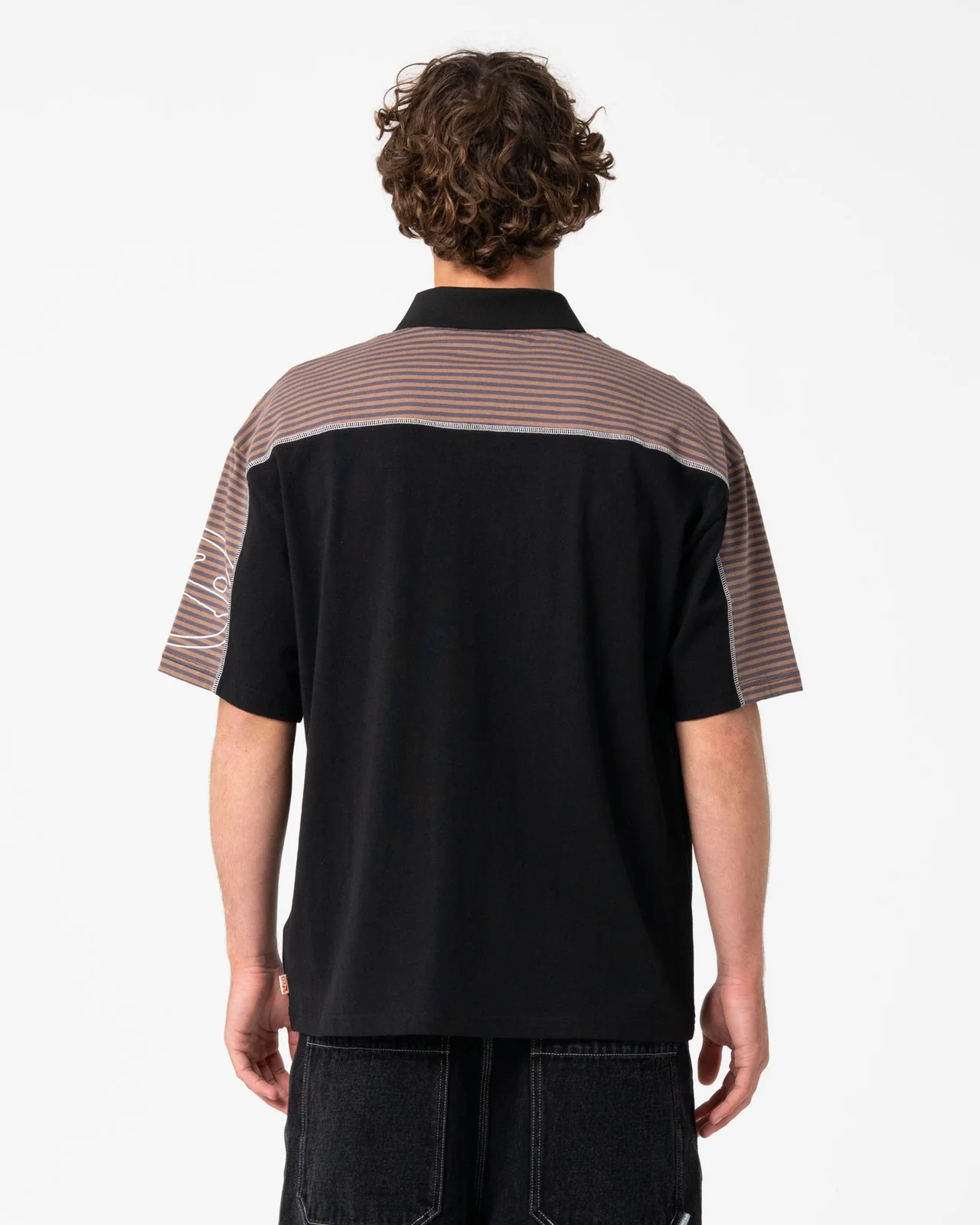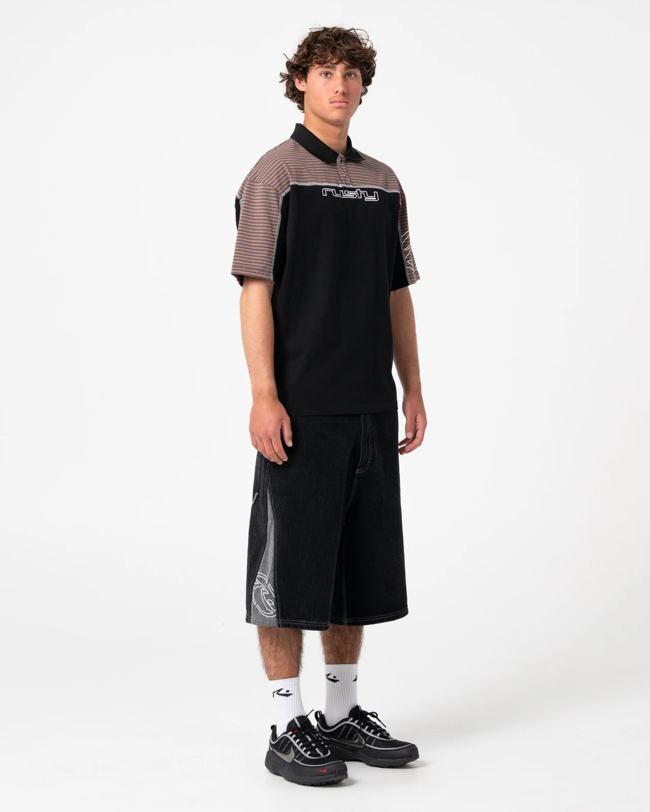 Oversized R2K Fit Polo With Chest Panel And Rusty Prints On Chest And Sleeve. 100% Cotton Jersey