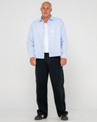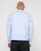 Cropped Fit Shirt Oxford Stripe Shirt With Rusty Chest Print. 65% Cotton 35% Polyester Oxford Stripe