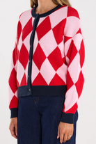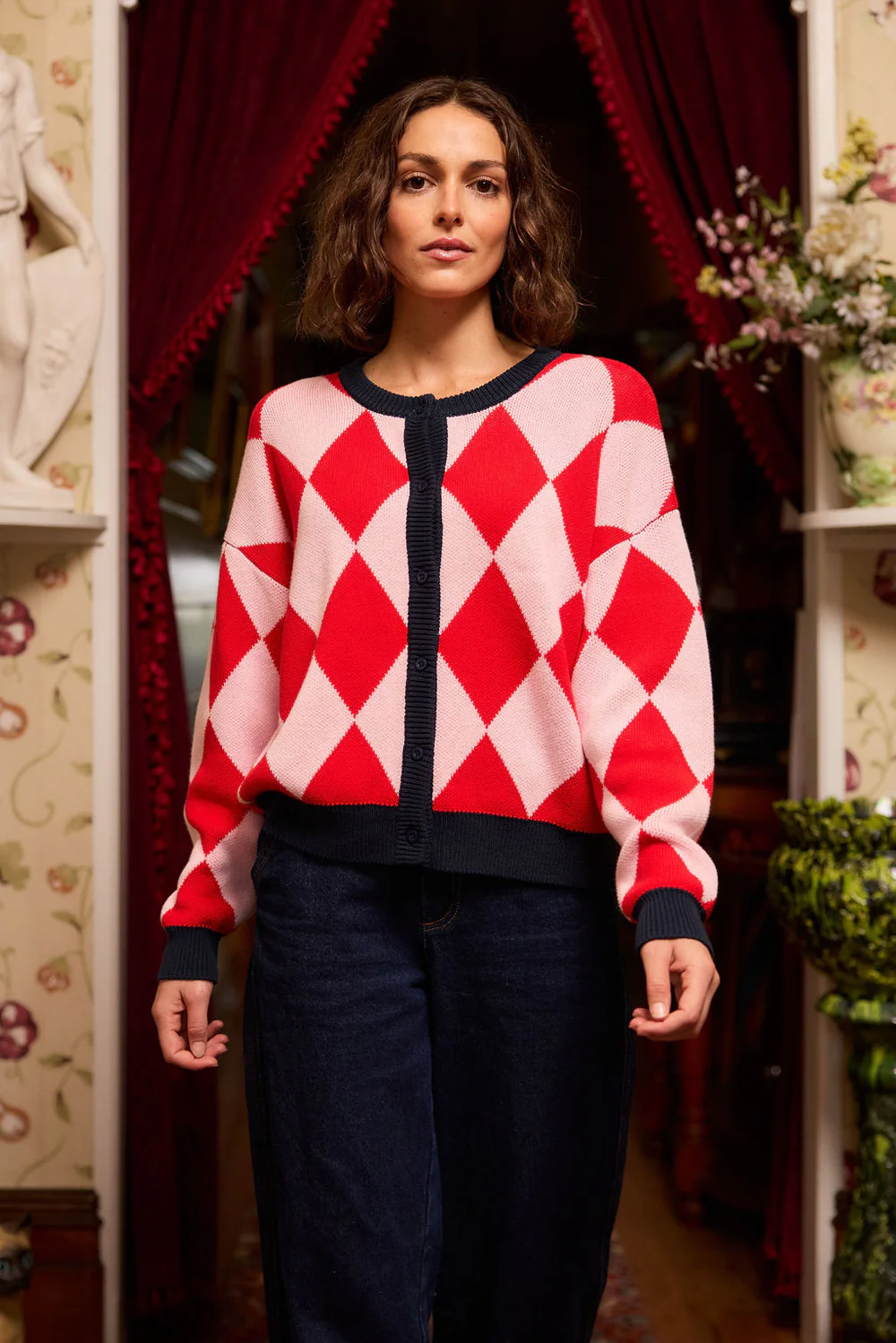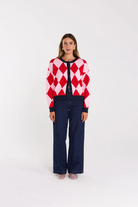 A true gem. This 100% Cotton Knit is crafted in a warm weight with a diamond knit texture and contrast rib for a playful touch. Cosy, fun, and an instant favourite.
