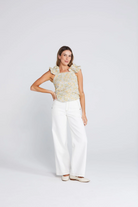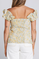 The Ruffle Singlet features a squared neck, gathered ruffle shoulders, side seam slits, and a shirring panel in the back for a comfortable fit. Oh one more thing, you can wear this on or off the shoulder, choices.