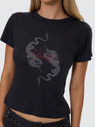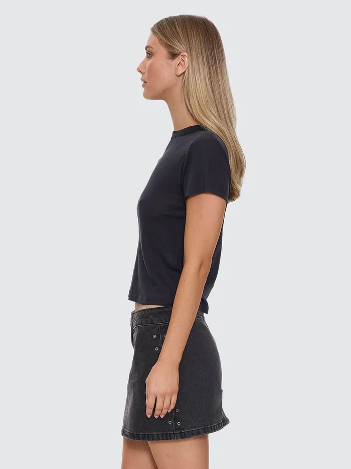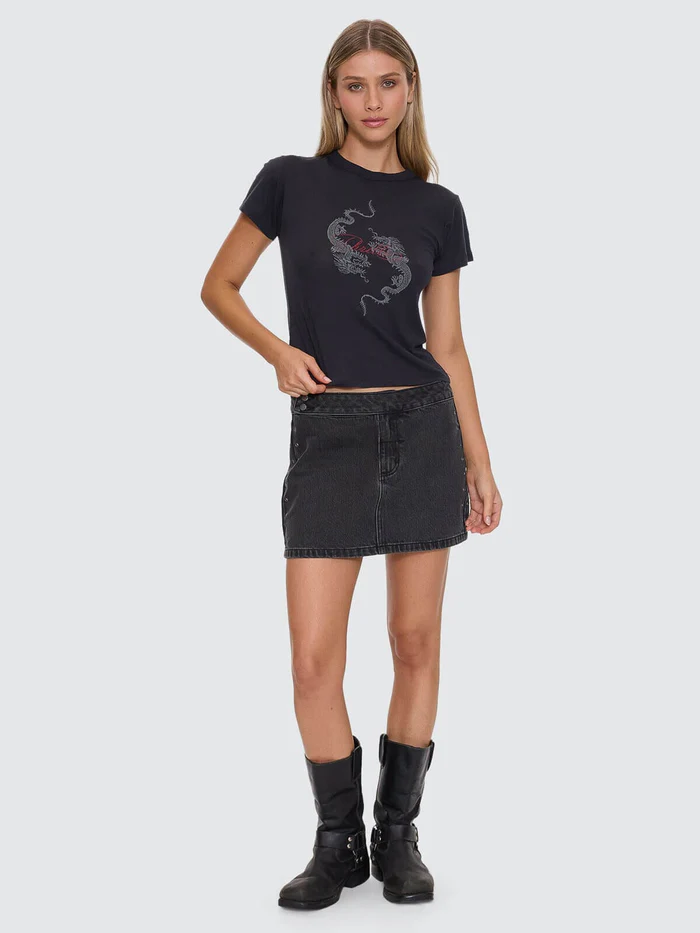 Packed with comfort and attitude, the Chaos Reigns Boy Tee in Washed Black delivers an easy, lived-in feel from first wear. Cut in a regular boy fit from lightweight cotton jersey, this black women's tee is breezy on warm days and layers clean when the temp drops. A centre-front graphic brings the punch, with a subtle back-neck print for extra details. The washed black shade nails the vintage edge, perfect with mini skirts, baggy jeans, and everything in between.