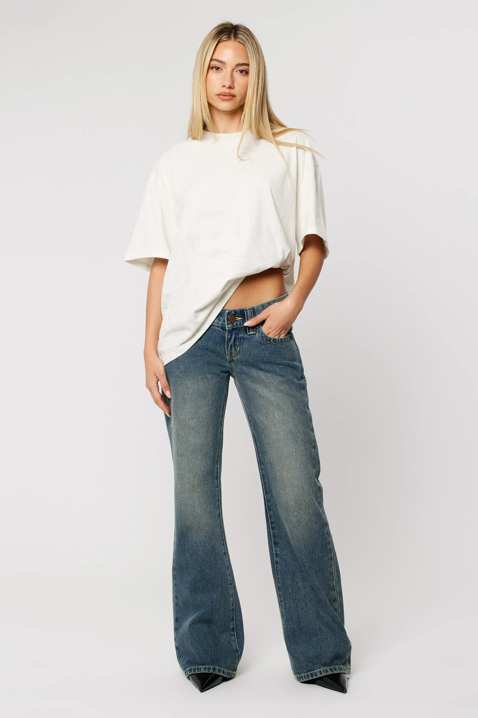 BETHANY BAGGY LOW RISE JEAN - Blasted Middy Blue