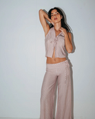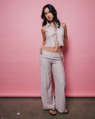 Collared Sleeveless Top With Double Front Tie Details And Logo Chest Embroidery. 85% Rayon 15% Polyester