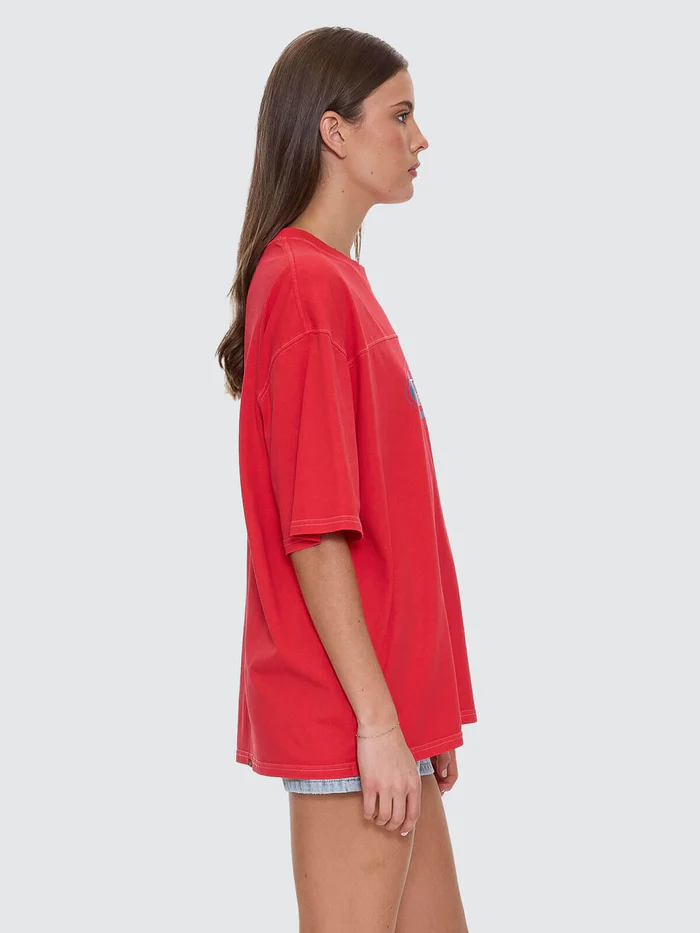 Fire up your street fit with the Track Record Oversized Tee in Flame Red, offering a bold colour and easy attitude. Cut roomy with a dropped shoulder, it features a relaxed, boxy hang while an across-chest panel and visible top-stitching add structure and style. The dry-hand cotton jersey fabrication feels sturdy from first wear, perfect for everyday wear, casual outings, and everything in between. An iconic front chest print seals the sporty vibe, ready to throw on with baggy denims for extra volume and attitude.