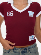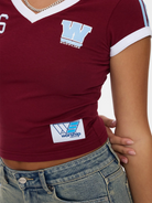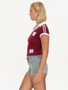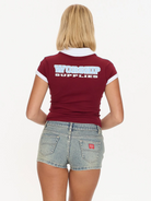 - The Belter Baby Polo Tee in Deep Cherry is a fitted Y2K-inspired piece, offering the perfect blend of sport and street style. Cut from a soft, premium blend of cotton jersey and elastane, this cropped tee women's au-style features a body-hugging silhouette with a contrast collar and embroidered hits for vintage varsity energy. Designed with stretch for comfort, itÕs as easy to wear on its own as it is layered under oversized jackets.