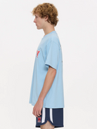 • Fresh and bold, the Little Belter Tee in Willow Blue channels vintage sports graphics with a clean front hit. Crafted from midweight cotton jersey, this streetwear t-shirt Australia piece offers a relaxed, roomy fit with a classic ribbed neckline and a soft, premium fabric. The light blue shade adds a pop of colour to your rotation, easy to pair with baggy denim shorts for an off-duty street look.